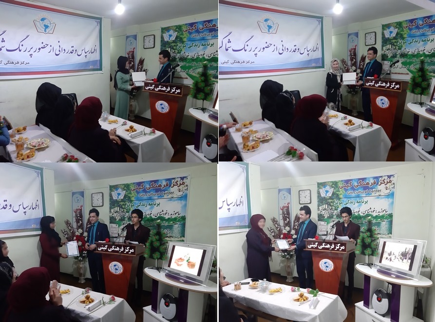 رئیس مرکز فرهنگی گیتی در پایان برنامه برای هر کدام از اشتراک کننده گان تقدیر نامه ویژه اهدا نمود.